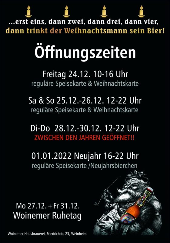 Woinemer Weihnachtsöffnungszeiten